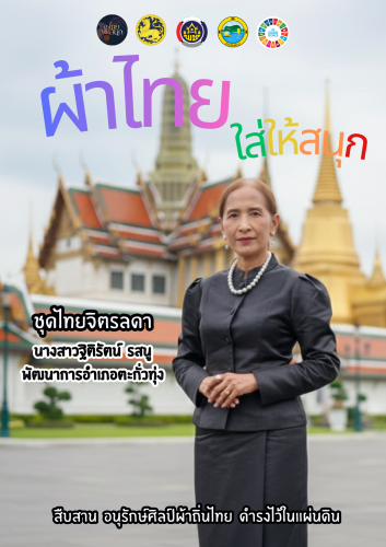 ขอเชิญชวน ข้าราชการ พนักงาน เจ้าหน้าที่ ภาคีเครือข่าย และประชาชน สวมใส่“ชุดไทยพระราชนิยม” มรดกแห่งสมเด็จพระพันปีหลวง “สืบสาน อนุรักษ์ศิลป์ผ้าถิ่นไทย ดำรงไว้ในแผ่นดิน” ส่งเสริมและสืบสานความเป็นไทย ด้วยการใช้และสวมใส่ผ้าไทยให้สนุกในทุกโอกาส เพื่อส่งเสริมและเผยแพร่อัตลักษณ์ผ้าไทยให้คงอยู่ อันเป็นค่านิยมด้านการรักษาวัฒนธรรมประเพณีไทยอันดีงาม กระตุ้นเศรษฐกิจฐานรากให้รายได้กระจายสู่ชุมชน ชุมชนพึ่งตนเองได้อย่างยั่งยืน