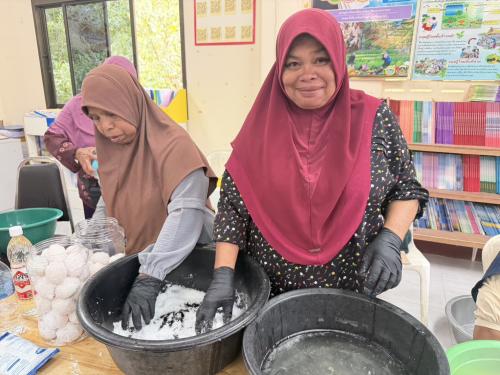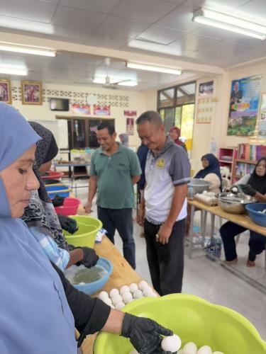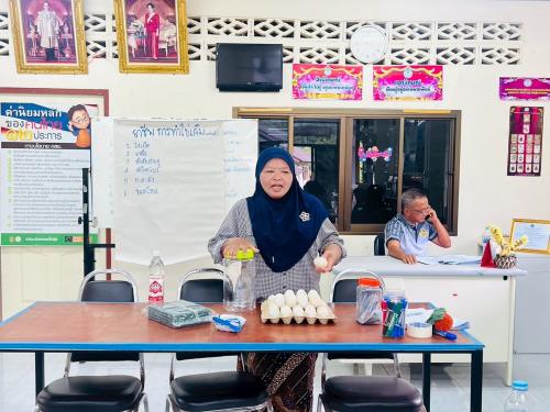 (index pointing right)(sun)ในโครงการฯ มีการจัดกิจกรรม 2 วัน วันแรก เป็นการสร้างความรู้ความเข้าใจแนวทางการตัดสินใจด้านอาชีพ การบริหารจัดการและการลงทุนเพื่อสร้างอาชีพเพิ่มรายได้ การจัดตั้งกลุ่มอาชีพ ฯลฯ ในที่ประชุมได้ข้อสรุปเกี่ยวกับการฝึกอาชีพ คือ อาชีพทำไข่เค็มแบบแห้ง วันที่สอง เป็นกิจกรรมการฝึกอาชีพ และวางแผนการจัดจั้งกลุ่ม ต่อยอดอาชีพต่อไป