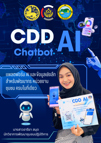 เชิญชวนมา!!!…เริ่มต้นใช้งาน CDD AI ผู้ช่วยพัฒนากรอัจฉริยะเพื่อการพัฒนาชุมชน ระบบช่วยวิเคราะห์และประมวลผล Big data เพื่อให้ข้อมูลที่ถูกต้องแม่นยำ นำไปใช้ในการวางแผนและตัดสินในเชิงนโยบายอย่างมีประสิทธิภาพ