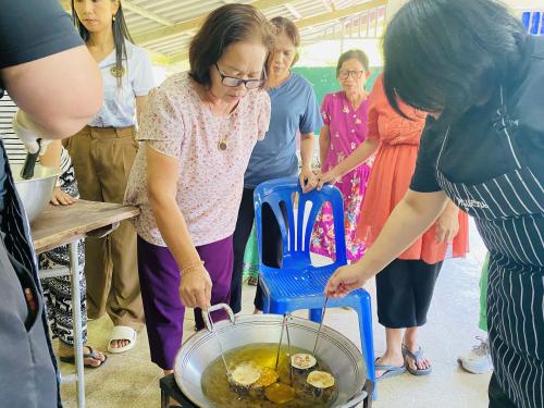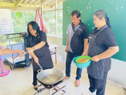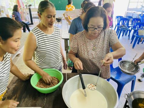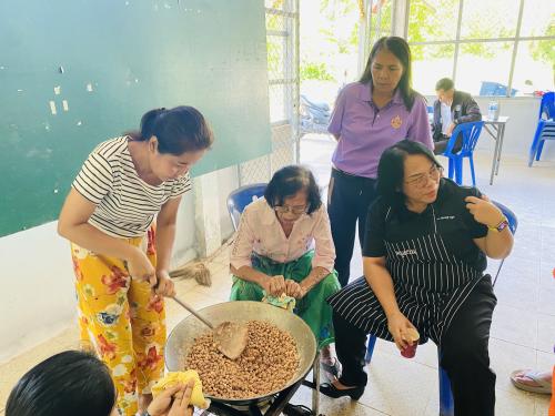 - กิจกรรมที่ 2 การดำเนินกิจกรรมตามประเด็นปัญหาที่คนในชุมชนอยากร่วมแก้ไขและความดีที่อยากจะทำ ภายใต้คุณธรรม 5 ประการ (พอเพียง วินัย สุจริต จิตอาสา กตัญญู) ได้แก่ การดำเนินโครงการถั่วแผ่นทอดบ้านโตนดินนอก เพื่อเป็นการแก้ไขปัญหาผู้มีรายได้น้อยในหมู่บ้าน ให้มีอาชีพเสริม เพิ่มรายได้ในครัวเรือน และเพื่อเป็นการส่งเสริมการรวมกลุ่มอาชีพในหมู่บ้าน ภายใต้พื้นฐานแห่งความพอเพียง และความสุจริต