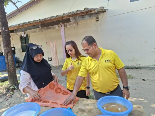 พช.ตะกั่วทุ่ง ลงพื้นที่ร่วมทำสีย้อมผ้า สินค้า OTOP กลุ่มสุรีย์พร แฮนด์แมด
